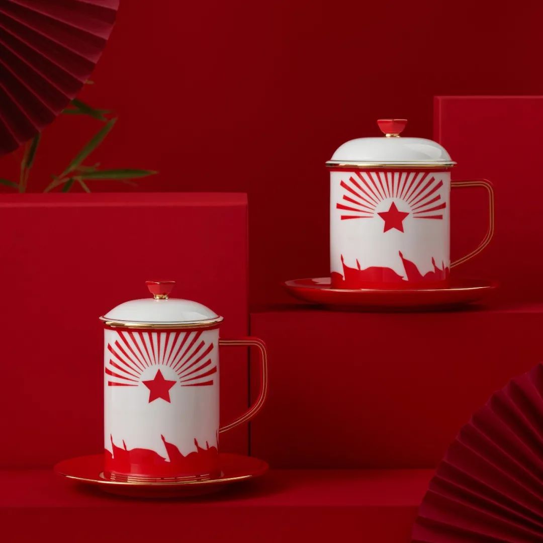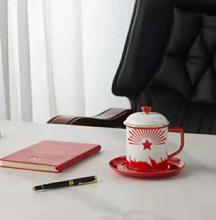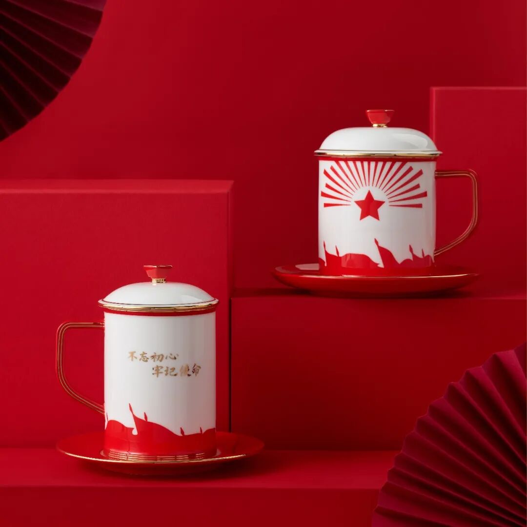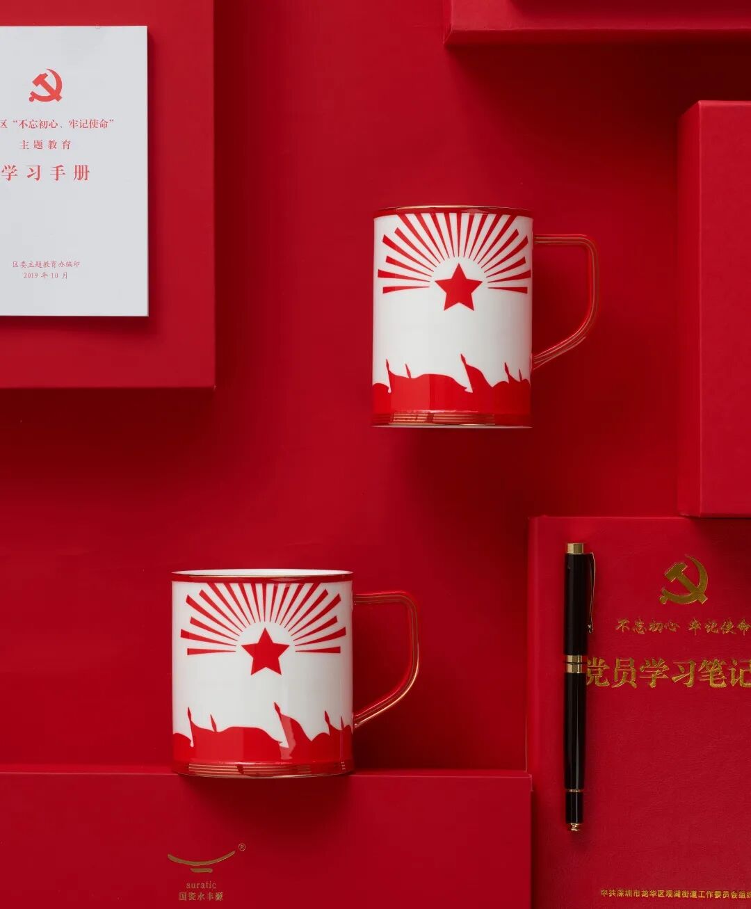 不忘初心 牢记使命 国瓷永丰源 红色文创产品 不忘初心 牢记使命 三大系列: 胜利、初心、先锋 已陆续面市 ——— 黄春茂艺术设计团队 倾情打造 胜利 · 三件套系列 胜利三件套杯(男士/女士) 统一零售价:498元/套 感恩价:398元/套 胜利 · 马克杯系列 胜利马克杯(男士/女士) 统一零售价:298元/套 感恩价:198元/套 设计理念 中国红——是国人尊爱的颜色 代表中华民族 善良且果敢、平和又炙热 中国红——是中国革命的象征 代表红色精神 强大和光明,新生与永恒 红色五角星盖钮 —— 寓意红色精神 薪火相传,继往开来 为人民服务 —— 共产党员以人民为中心 全心全意为人民服务的宗旨 19根红色光芒线 —— 相互联系 围绕着一颗红色五角星 寓意全国人民万众一心、一心向党 奋进之光照耀中华大地、照亮未来之路 齐向十四五规划伟大目标,奋力迈进 迎风飘扬旗帜 —— 中国共产党团结带领中国人民 实现百年奋斗目标 展现中国人民团结一致 建设美好新中国 未来将从胜利走向新的胜利 不忘初心,牢记使命 —— 中国共产党人的初心和使命 是为中国人民谋幸福 为中华民族谋复兴 工艺品质 釉下彩 —— 多一次贴花,多一次入窑 才让红色花面与红色釉面完美融合 对素胚规整度要求高 尺寸要准,品质要好 釉下贴花技艺要精细 技艺精湛师傅方可胜任 满堂红 —— 选用“千窑一宝” 广东省非物质文化遗产 “满堂红”烧制技艺 满堂红,中国红 传承红色精神 不忘初心,牢记使命 胜利系列 现已开启预售 欢迎订购 初心系列、先锋系列 敬请期待